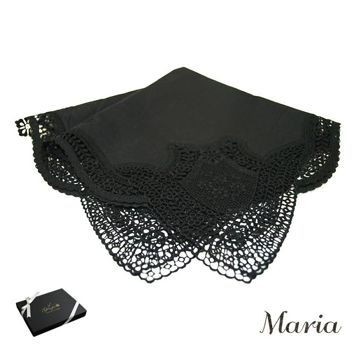 【ギフト 高級 ハンカチ】しっとりした清楚で高級感溢れるフォーマルレースハンカチ ブラック【Maria】【高級 ブライダル ハンカチ ギフト プレゼント ウェディング】【箱入り】 母の日