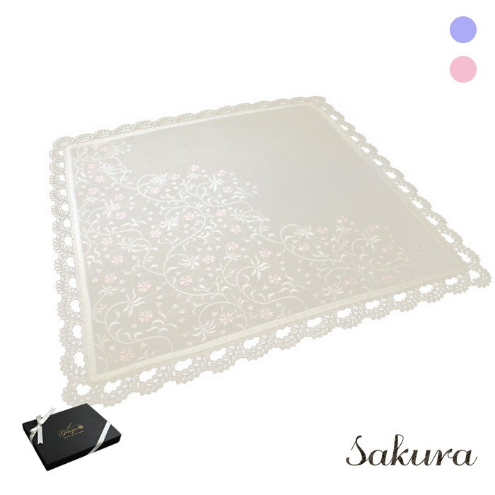 【ギフト 高級 ハンカチ】桜柄の和装に似合う雅なレースハンカチ【さくら 】 (ギフトボックス)【高級 ブライダル ハンカチ ギフト プレゼント ウェディング】【箱入り】 母の日