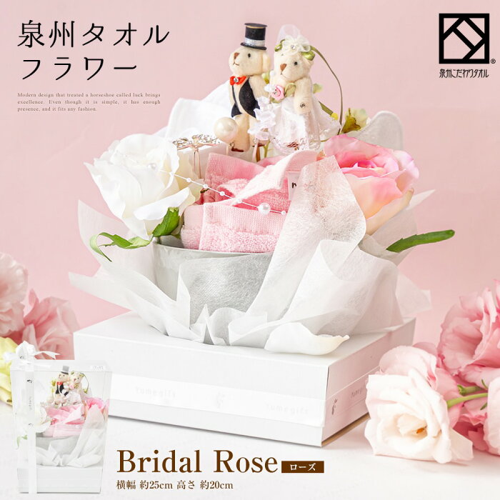 泉州タオルフラワー ブライダル ウエディング ローズ バラ ハンドタオル タオルハンカチ ブライダルベア くま バラ 出産祝い かわいい お返し プレゼント 花 花束 日本製 お誕生日 退職祝い 送別会 法人用 お見舞い 母の日 結婚祝い おしゃれ stf-bridal-s